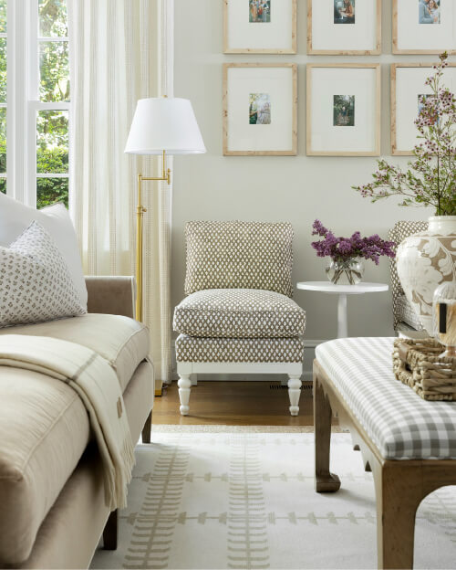To order an upholstery fabric sample, please purchase here. For wood finish samples, contact hello@brookeandlou.com with the finish you're interested in and we can assist you in ordering.