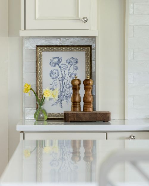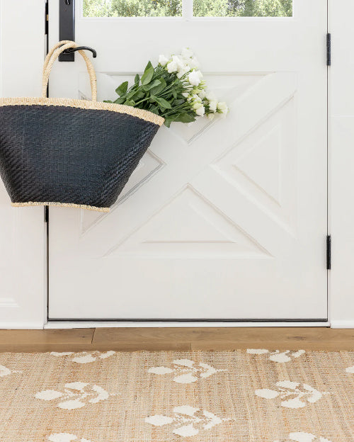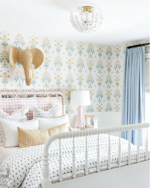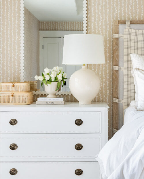 Main product image shown in Lily Floral Stripe fabric and Alabaster finish.